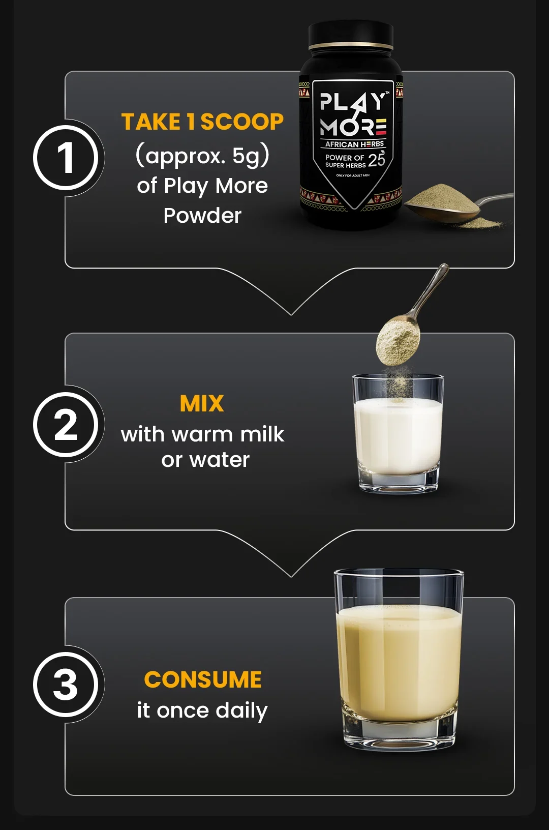 Play More lene ke baad performance aur stamina dono mein improvement feel hua. Aaj ise use karte huye mujhe 1 mahina ho gaya, testosterone level aur energy dono mein difference dikha.